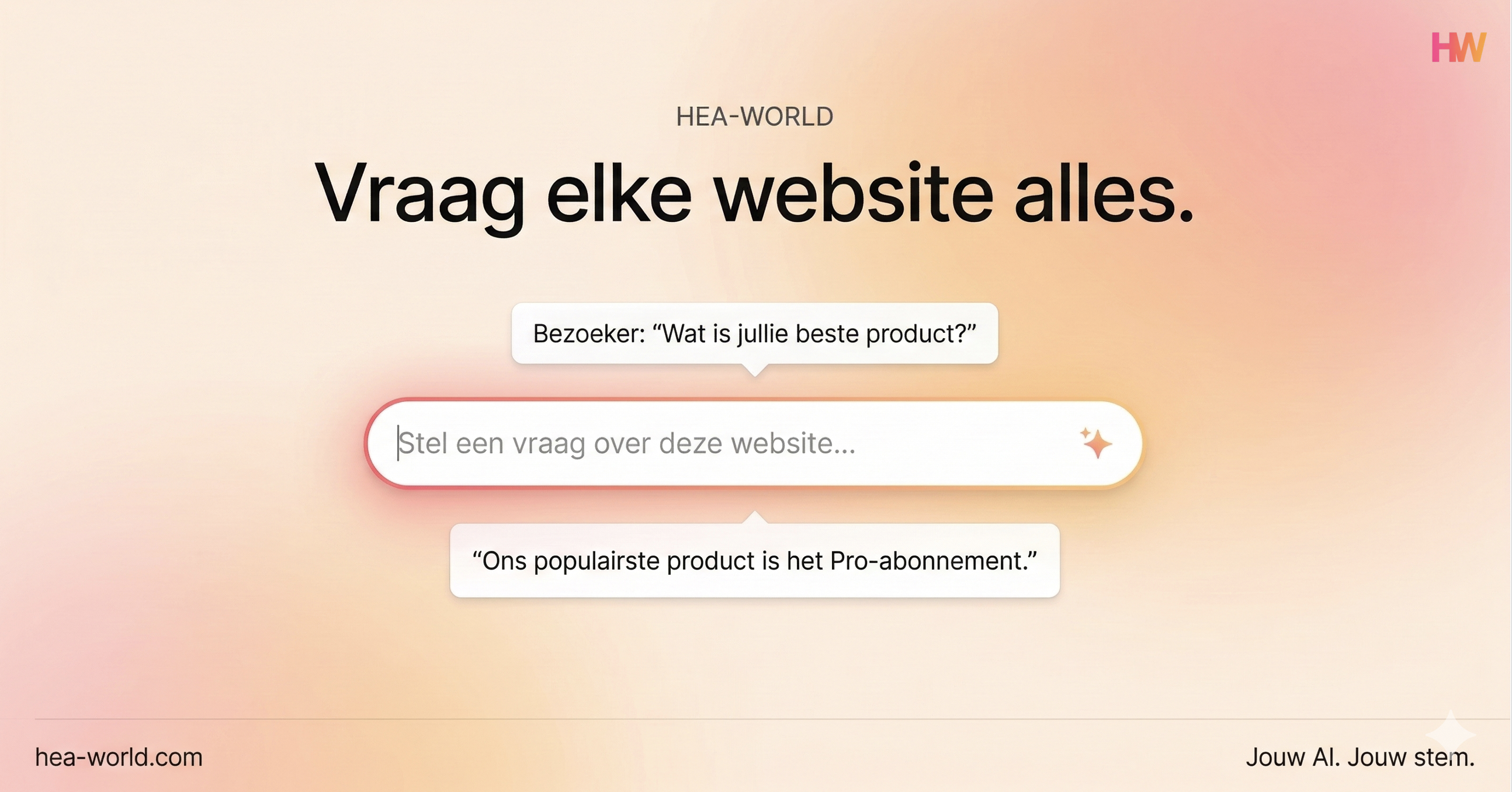 HEA-World lanceert Human-Enhanced Agents: AI-assistenten getraind op eigen kennis die bezoekers vragen beantwoorden en organisaties online vertegenwoordigen.
